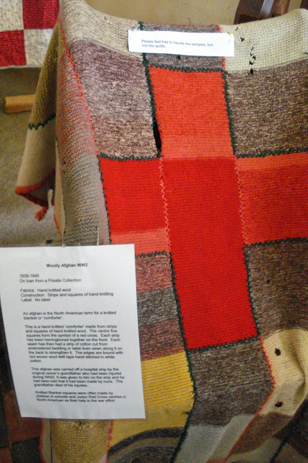 Earlier, I showed a Cumbrian strippy quilt that I had bought; I had wanted an example of a wave quilted bed quilt. The wave pattern, an allover quilting pattern, is typical of Cumbria, the Isle of Man and Ireland. Surprisingly, there was another wave quilt available at a reasonable price - here it is. It is a utility quilt, made of scraps and offcuts in a frame pattern. The quilt measures 72" by 87".